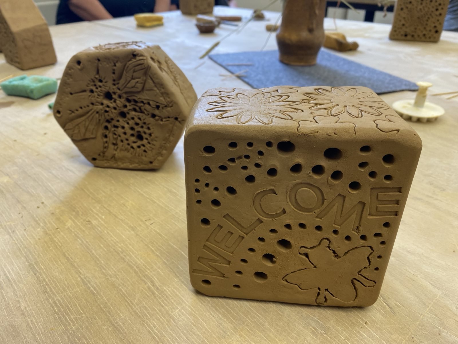 Im Töpfereimuseum Langerwehe haben wir unter fachkundiger Anleitung Bienenhotels und kleine Wassertränken aus Ton gebaut. Die Arbeit mit Ton hat nicht nur Spaß gemacht – es sind auch viele kreative und wunderschöne Unikate entstanden!