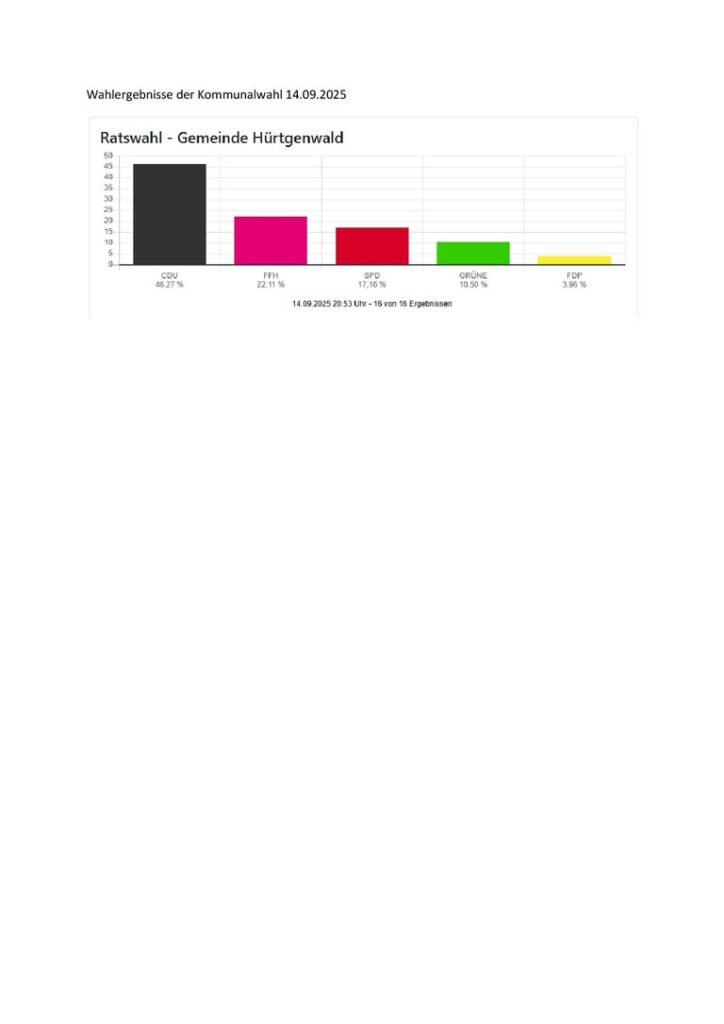 Wir danken allen Wählerinnen und Wählern in Hürtgenwald für die Stimme – und allen Helferinnen und Helfern für die Unterstützung im Wahlkampf. Wir hatten uns mehr erhofft, aber wir werden mit aller Kraft weiter für unser Werte eintreten und eine konstruktive Oppositionsarbeit machen. Die nachfolgenden Grafiken sind von der Seite Regio IT entnommen bzw. teils mit den Werten selbst erstellt. Quelle zu den Ergebnissen: https://www.huertgenwald.de/aktuelles/aktuelle-meldungen/ergebnis-kommunalwahl-14.september-2025.php