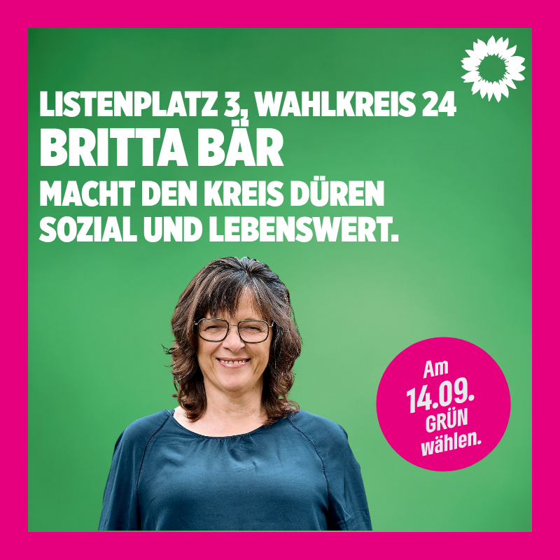 Ich bin Britta Bär und seit 16 Jahren in der Kommunalpolitik aktiv, aktuell als Kreistagsmitglied und als Ratsmitglied der Gemeinde Kreuzau.